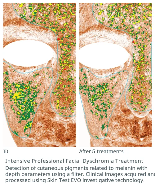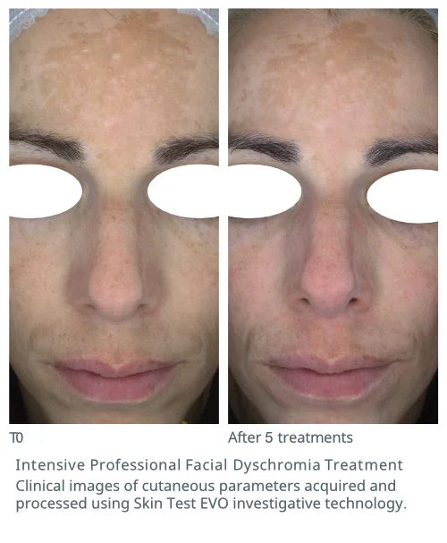 Die Behandlung zielt darauf ab, Farbunterschiede schrittweise zu reduzieren. Ziel ist nicht nur, diese optisch abzuschwächen, sondern auch die Prozesse zu regulieren, die sie verursachen: Überproduktion von Melanin, Entzündungen und oxidativen Stress. Die Ergebnisse sind progressiv und stabil, nicht sofort, aber nachhaltig.