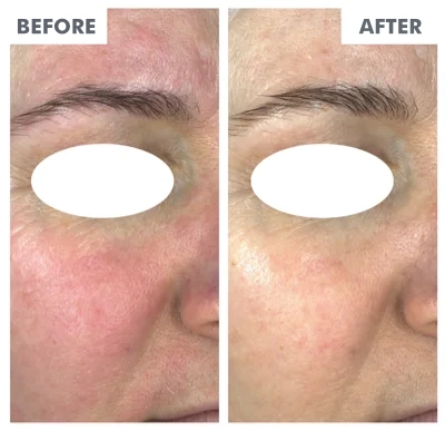 Widespread redness, persistent vasodilation, sensation of heat and itching, visible capillaries
