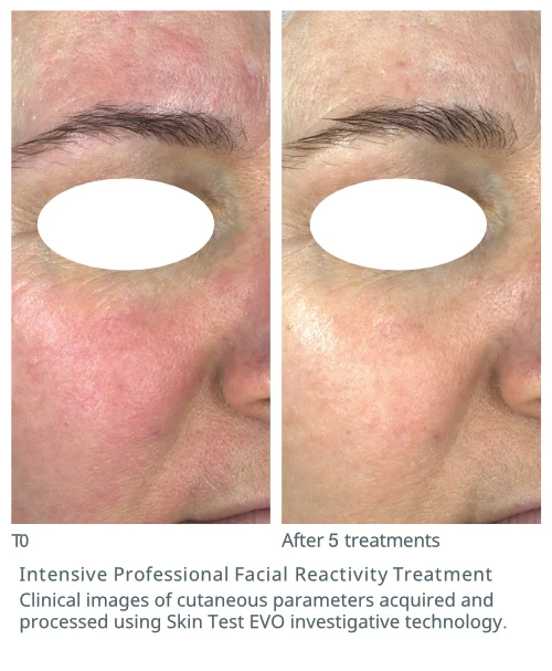 Skin reactivity – or hypersensitivity – is a persistent inflammatory condition mainly affecting the cheeks, nose, forehead, and chin, with flare-ups and remissions. Symptoms include widespread redness, sudden flushes, visible capillaries, and in more severe cases, small inflammatory lesions like papules and pustules, or localized skin thickening.
