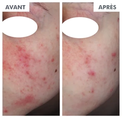 Inflammations acnéiques, boutons et cicatrices, pores dilatés et peau brillante, teint inégal