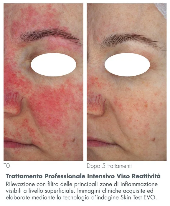 La reattività - o ipersensibilità - cutanea è una condizione infiammatoria persistente che interessa soprattutto guance, naso, fronte e mento, con fasi di riacutizzazione e remissione. Si manifesta con rossore diffuso, vampate improvvise, capillari visibili e, nei casi più marcati, piccole lesioni infiammatorie come papule e pustole, o ispessimenti cutanei localizzati.
