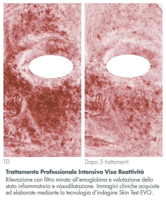 Il trattamento erythròs modula la risposta neuro-infiammatoria e rafforza la microcircolazione, ripristinando la stabilità vascolare della pelle e riducendo visibilmente la reattività cutanea.